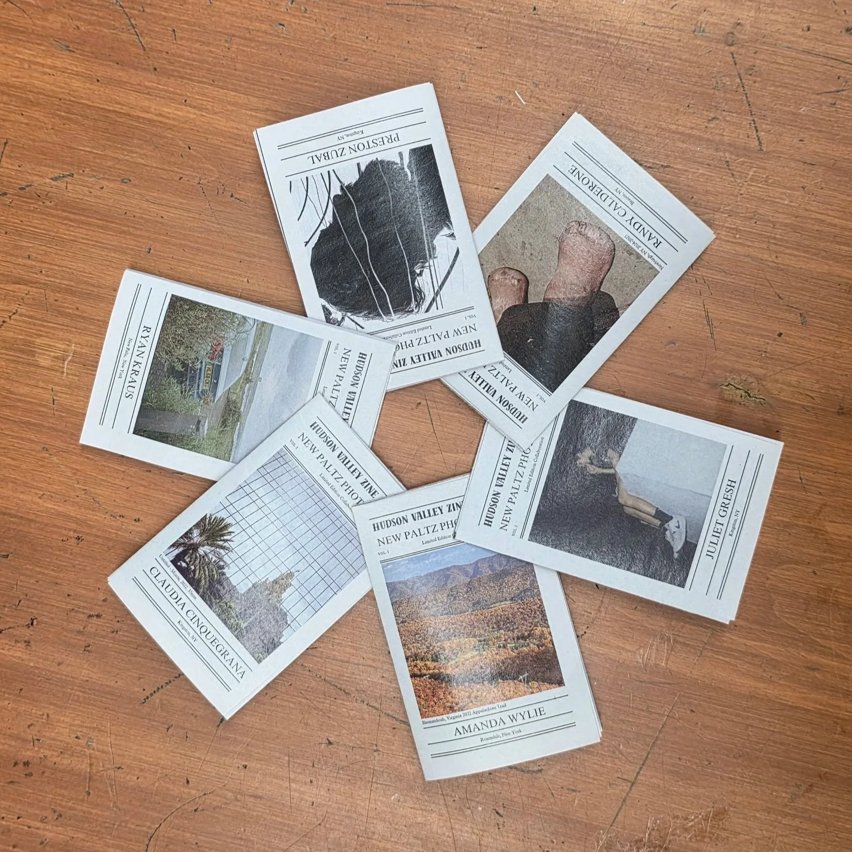 volume 1 issue 1 released at Camp Kingston in May 2025 Jess Amrich- Southern VT Ally Bell- New Paltz, NY Amanda Wylie- Rosendale, NY Grace Gallagher- Cambridge, MA Zach Dee- Astoria, NY Ryan March- Kingston, NY shop vol. 1 issue 1 volume 1 issue 2 released at Rosendale Street Fest in July 2025 Purrsimmon- Rosendale, NY Hannah C.T.- Kingston, NY Marks the Shot- Easton, PA Savannah Dallas- Port Ewen, NY Little Histories- Beacon, NY Mystery Artists- Issue #1 shop vol. 1 issue 2 volume 1 issue 3 released at Camp Kingston in August 2025 Caroline Burdett- Woodstock, NY Bone Apple- Brooklyn —>Kingston, NY Roula- Plush, Oregon Chris Busone- Katonah, NY Little Histories- Beacon, NY Carla Rozman- Kingston, NY shop vol. 1 issue 3 HVZM x NPPWhudson valley zine machine X new paltz photo works special edition collaboration released at grand opening of Rule of Thirds Studio (Roost Arts) in August 2025 Randy Calderone Claudia Cinquegrana Juliet Gresh Ryan Kraus Amanda Wylie Preston Zubal shop special edition